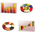- 3D versions of bar, rectangle, pie, sector and bubble charts. »