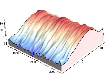 data = Flatten[{#[[1, 1 ;; 2]], #[[2]]}] & /@ WeatherData["KTUL", "MeanTemperature", {{1950}, {2008}, "Month"}];