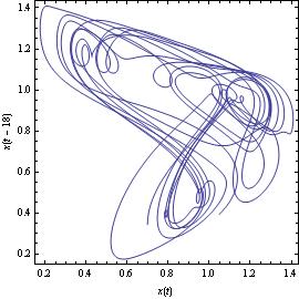 mge = {x'[t] == 0.4 x[t - 18]/(1 + x[t - 18]^10) - 0.2 x[t], x[t /; t <= 0] == 1/2};