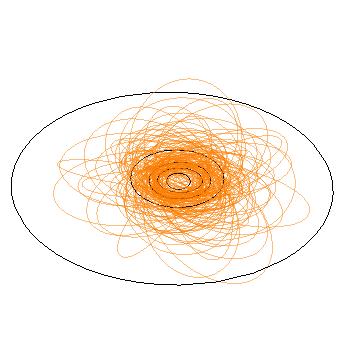 Graphics3D[{ AstronomicalData[#, "OrbitPath"] & /@ AstronomicalData["Planet"], {Orange, Opacity[.5], (AstronomicalData[#, "OrbitPath"] & /@ AstronomicalData["ApolloAsteroid"])} }, PlotRange -> {{-6, 6}, {-6, 6}, {-4, 4}}, Boxed -> False, ViewAngle -> \[Pi]/11]