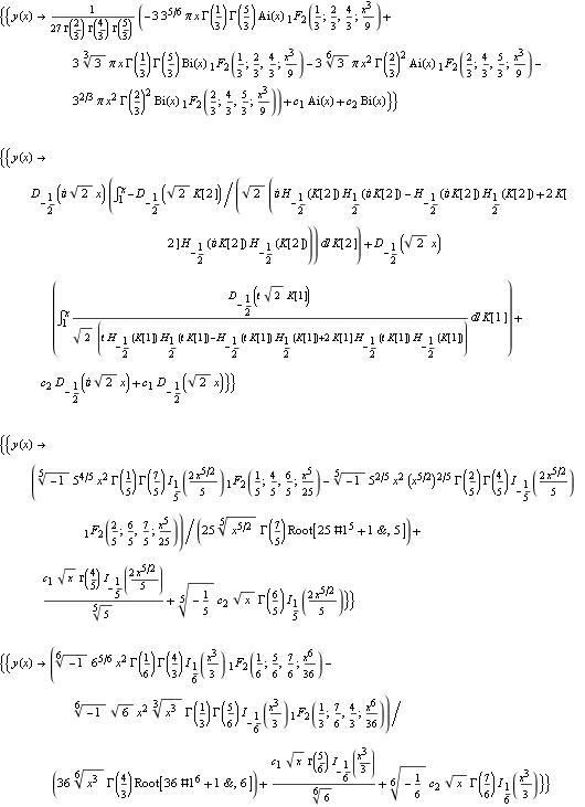 Table[DSolve[y''[x] == y[x] x^n + 1, y[x], x], {n, 4}] // Column // TraditionalForm