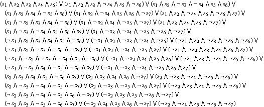 RandomInteger[1, 2^7]; BooleanFunction[%, Array[Subscript[x, #] &, 7]] // TraditionalForm
