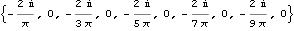 Table[FourierCoefficient[SquareWave[x/(2 Pi)], x, n], {n, 1, 10}]; FindSequenceFunction[%, n]