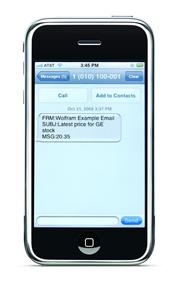 SendMail[ "To" -> "2175550100@wirelessphonecompany.com", "Subject" -> "Latest price for GE stock", "Body" -> ToString@FinancialData["GE"]];