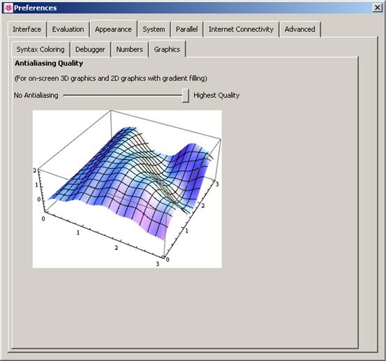 Customize antialiasing of 3D graphics using the Antialiasing Quality setting.