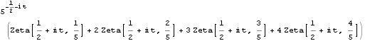 DirichletTransform[Mod[n, 5], n, 1/2 + I t]
