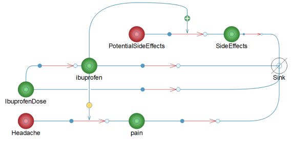 Utilisez des composantes intégrées pour modéliser la douleur lors de maux de tête, l’ibuprofène et les effets secondaires potentiels.