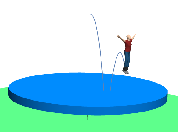 Un trampolín es un dispositivo recreativo que consta de una tela estirada entre un marco de acero, utilizando muchos resortes. Sin embargo, su uso puede ser peligroso si la persona que salta pierde el control y cae. En este Laboratorio virtual, analizará la dinámica de la persona que salta modificando distintos parámetros, tales como el peso de la persona, la inclinación del suelo y la velocidad inicial de la persona en salto.